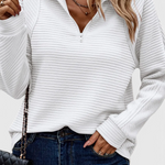 Jersey Helene avec décolleté en V, fermeture éclair et manches longues