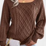 Un design intemporel qui allie chaleur et style avec une touche délicate et féminine. Le pull Fien se distingue par son décolleté carré structuré et les détails de boutons décoratifs qui ajoutent une touche raffinée. Son tissu doux et confortable en fait un essentiel polyvalent pour les jours froids.