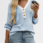 Top Rumer à Rayures avec Décolleté en V et Boutons