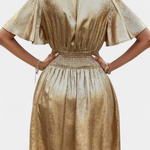 Légère, fluide et sophistiquée, la robe Adalee est conçue pour se démarquer avec sa finition brillante et sa silhouette flatteuse. Le décolleté en V et la taille croisée mettent élégamment en valeur la silhouette, tandis que les manches fluides ajoutent mouvement et féminité. Parfaite pour des dîners, des célébrations ou des jours spéciaux avec un style raffiné.