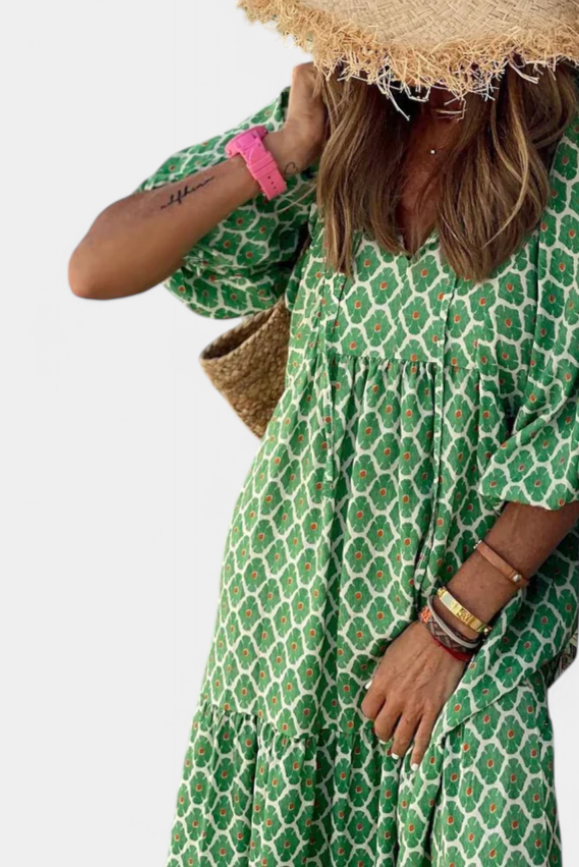 Robe Aroa Boho avec Imprimé Artistique et Silhouette Fluide