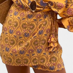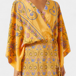 Vibrante et décontractée, la robe Candela capture l'esprit de l'été avec son imprimé floral d'inspiration ethnique, sa coupe mini et son décolleté croisé en V. Les manches amples et la jupe enveloppante avec nœud créent une silhouette fluide et féminine, parfaite pour des escapades ensoleillées ou des journées remplies de soleil.