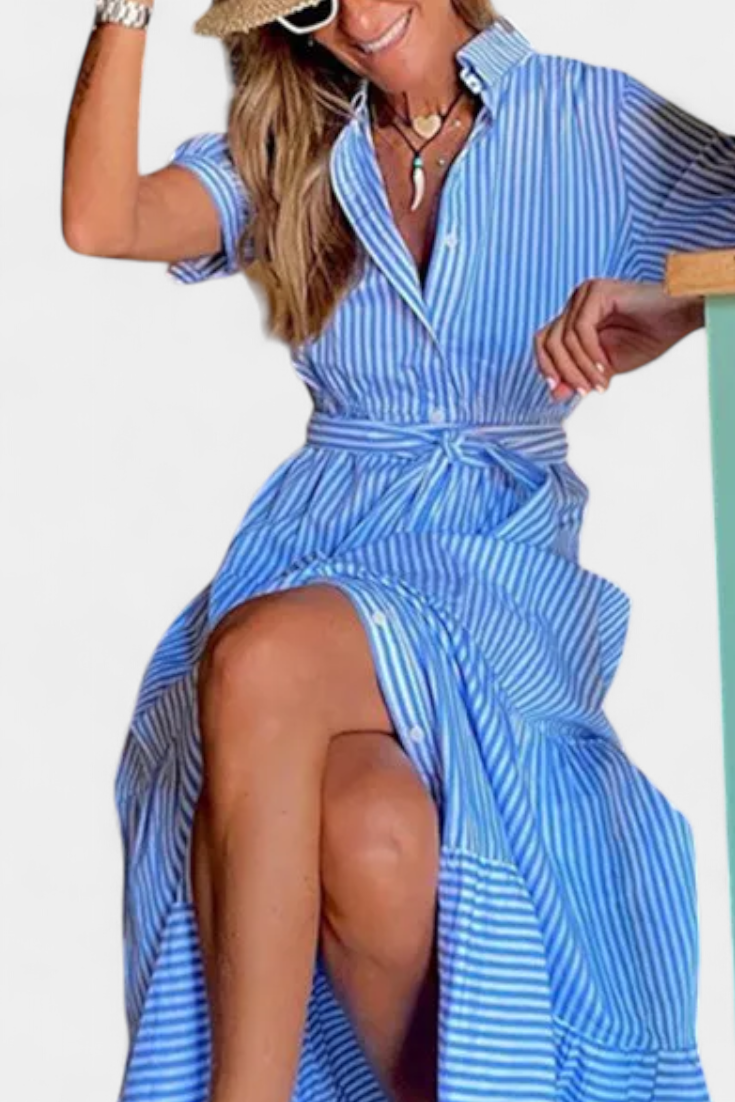 Robe Chemise Longue Rayée Maya avec Ceinture