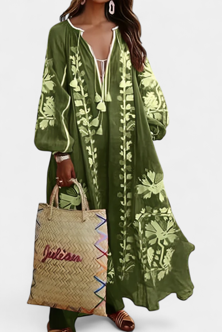 Robe Florale à Manches Longues Alessia en Style Bohème