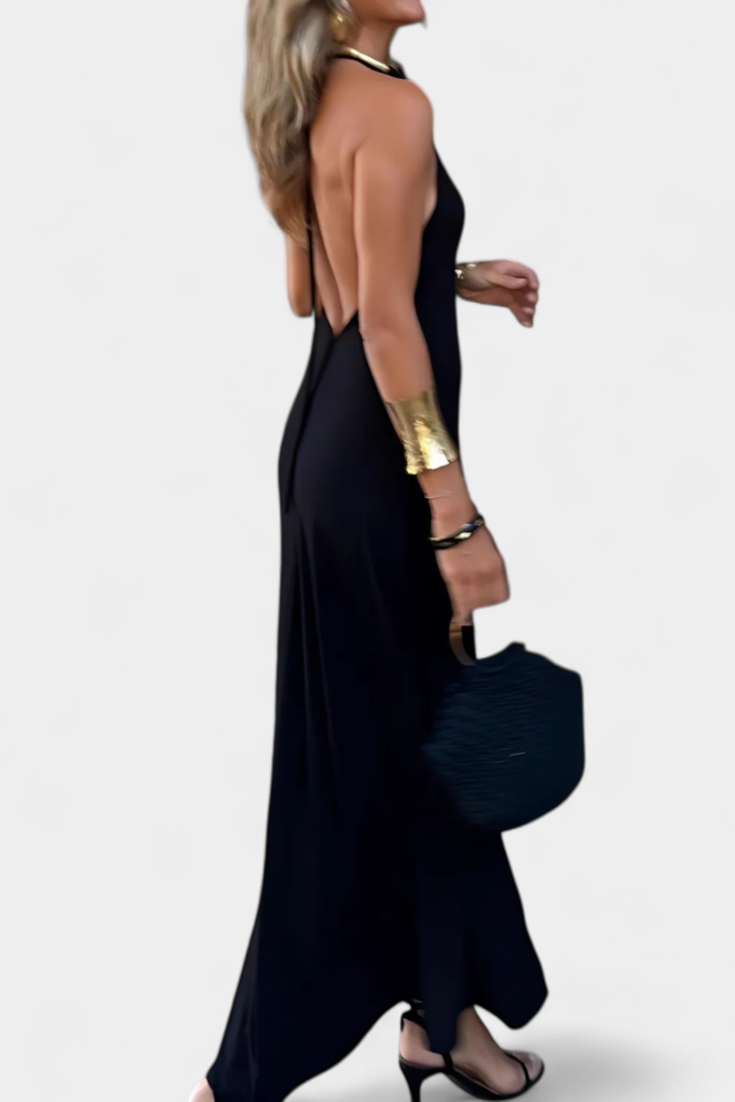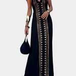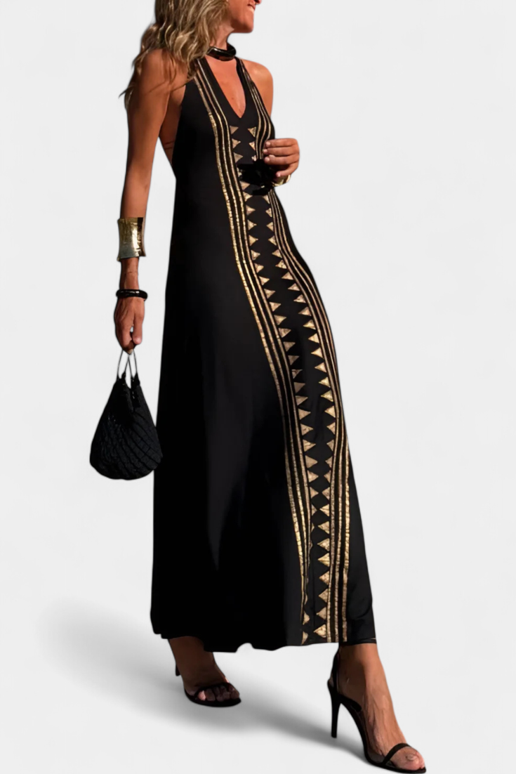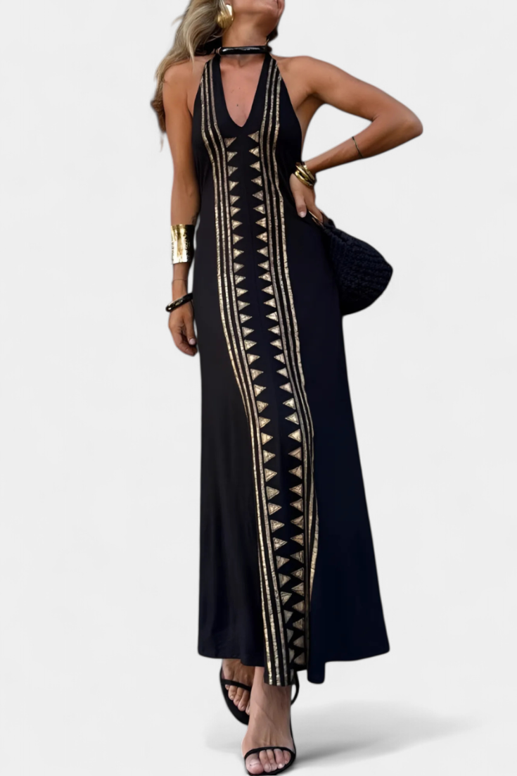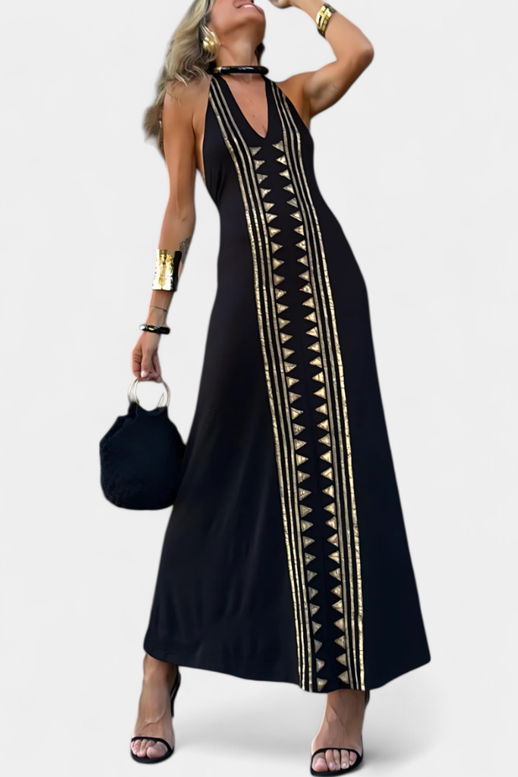 Robe Longue Douce avec Dos Nu et Imprimé Doré