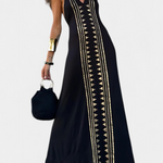 La robe Douce est conçue pour envelopper délicatement et mettre en valeur votre personnalité. Son décolleté halter allonge le cou, tandis que le dos nu et l'imprimé géométrique doré ajoutent une touche moderne et frappante. Fabriquée dans un tissu élastique, respirant et confortable, c'est un vêtement pensé pour s'adapter à vous lors de journées ensoleillées ou de soirées détendues avec style.
