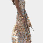 Robe Longue en Soie Teófila avec Imprimé Trésors de l'Océan