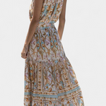Un hommage au charme marin avec une élégance fluide. La robe Teófila éblouit avec son imprimé inspiré des trésors de l'océan et une silhouette longue qui met subtilement en valeur la silhouette avec sophistication. Son tissu en soie offre un doux éclat et une chute éthérée qui se déplace avec grâce, parfaite pour des soirées spéciales ou des escapades au bord de la mer.