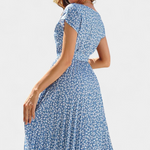 Raffinée, féminine et avec un charme bucolique, la robe Galilea évoque l'élégance d'une journée sous le soleil parmi des champs en fleurs. Son décolleté rond et sa taille ajustée encadrent naturellement la silhouette, tandis que la jupe plissée ajoute mouvement et grâce à chaque pas.