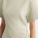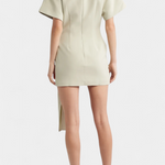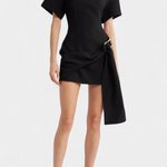 Minimalisme avec caractère et une touche sculpturale. La robe Coraline réinvente le mini avec des manches structurées, une ceinture drapée et une boucle dorée qui sert de point focal avec une attitude sophistiquée.