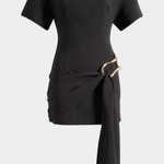 Robe Mini Coraline avec Ceinture Drapée et Boucle Dorée