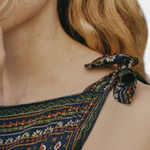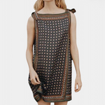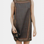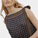 Réveillez le charme effortless des années 60 avec la robe mini Lorena Montmartre avec écharpe, une ode nostalgique à l'élégance vintage. Fabriquée avec un doux mélange de soie synthétique et de viscose, et ornée d'un imprimé inspiré des écharpes qui rappelle les classiques écharpes en soie, cette silhouette adorée allie parfaitement amusement et sophistication.