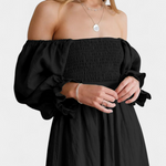 Robe Petra à Deux Niveaux avec Corps Froncé et Manches Bouffantes