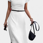 La robe Florence se distingue par sa silhouette détendue en A et son design asymétrique qui ajoute du caractère sans perdre en élégance. Avec un col haut structuré et des manches courtes, c'est un vêtement conçu pour ceux qui recherchent un look urbain avec un style sobre et contemporain. Parfaite pour des journées actives avec une touche raffinée.