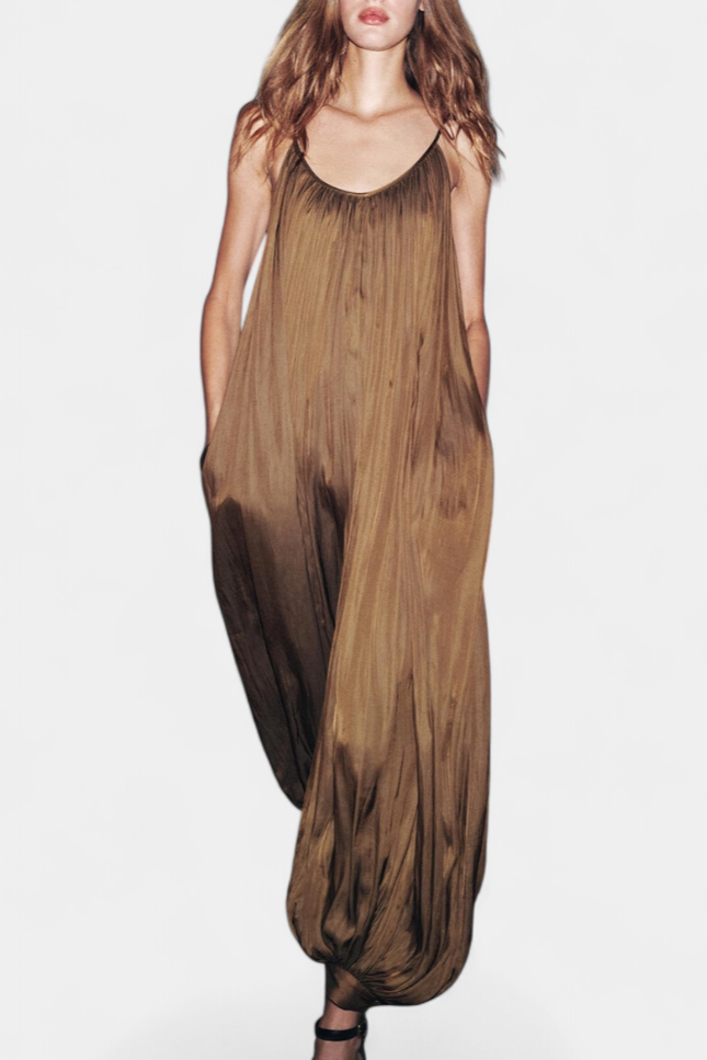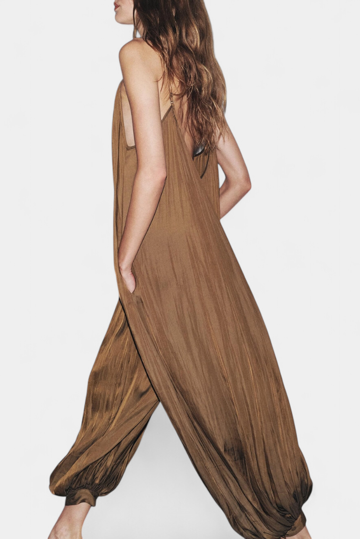 Combinaison Plissée Longue Lucy avec Silhouette Décontractée