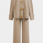Une proposition raffinée qui allie confort et style intemporel. Aireen se distingue par un cardigan aux lignes classiques et des détails subtils qui élèvent n'importe quelle tenue. Les pantalons à jambes larges avec taille élastique offrent fluidité et un ajustement flatteur, tandis que leurs tons neutres garantissent une polyvalence infinie pour différents moments de la journée.