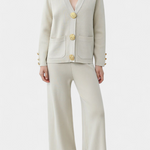 Ensemble Aireen en Tricot avec Cardigan et Pantalons à Jambes Larges