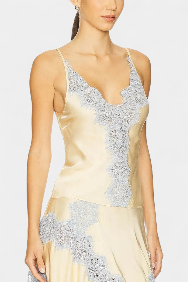 Un ensemble sophistiqué qui combine l'éclat soyeux du satin avec des détails romantiques pour un look chic sans effort. Le Mirren présente un top sans manches avec des bretelles fines et un décolleté flatteur, équilibré par une jupe midi fluide qui ajoute un mouvement naturel. La dentelle contrastante dans des tons délicats fait un clin d'œil au style rétro français, transformant ce design en une proposition raffinée et polyvalente.