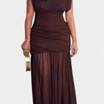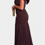 Une robe maxi marron chaud, parfaite pour des dîners, des soirées spéciales ou toute occasion où vous souhaitez vous démarquer avec une élégance discrète.