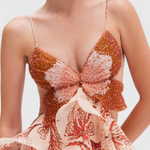 Légère, vibrante et d'esprit libre. La robe Juliette combine un décolleté bijou avec une silhouette éthérée de volants qui flottent doucement à chaque mouvement. Inspirée des célébrations au coucher du soleil et des escapades bohèmes, elle évoque une féminité artistique qui se démarque sans effort.