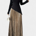 Une silhouette raffinée qui allie modernité et équilibre. Leya se distingue par un design de blocs de couleur contrastés qui rehaussent son attrait visuel, tandis que la coupe en A ajoute fluidité et mouvement naturel. Son décolleté rond et ses manches longues équilibrent l'apparence générale, créant une pièce polyvalente et sophistiquée pour la saison.