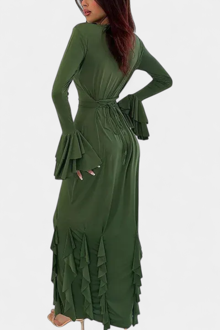 Robe Longue Calissa avec Volants et Manches Évasées