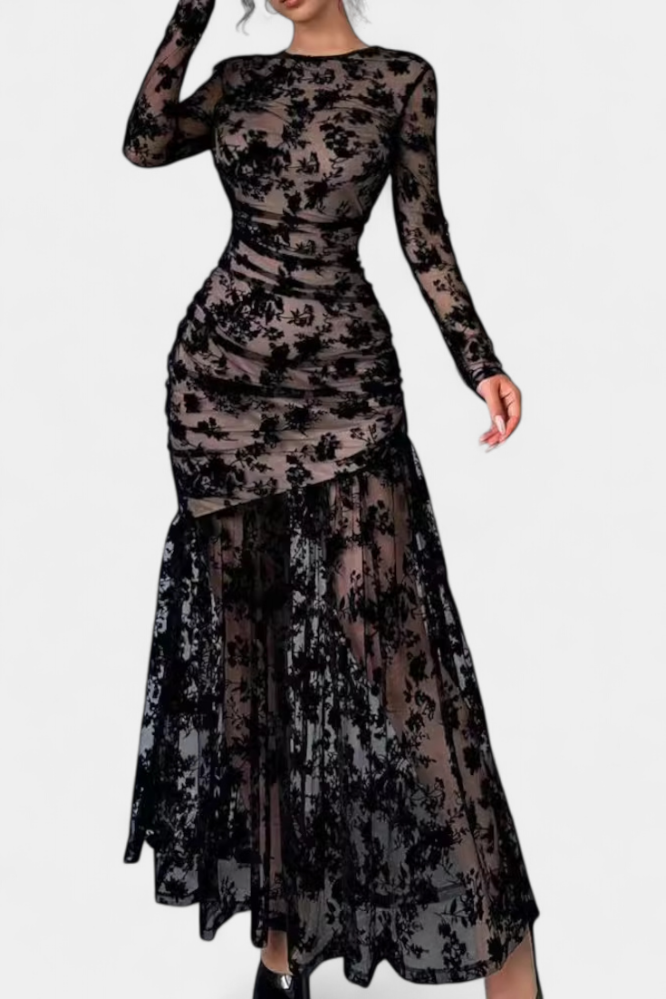 Robe Longue Fleurie Alvana avec Col Rond