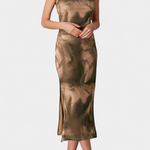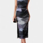Une proposition raffinée qui combine style rétro et modernité visuelle. Helaia se distingue par un imprimé numérique aux tons doux qui apporte une touche artistique et distinctive. Sa silhouette longue flatte la silhouette, tandis que la fente frontale ajoute du dynamisme et une touche sensuelle. Un design pensé pour projeter confiance et élégance intemporelle.