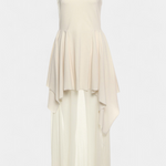 Une silhouette sensuelle qui allie fraîcheur et féminité contemporaine. Hollis se distingue par un décolleté en V français et un col halter qui allonge subtilement la silhouette. Le dos nu ajoute une touche audacieuse, tandis que la taille avec des détails en maille et le design ajusté définissent délicatement la forme.