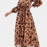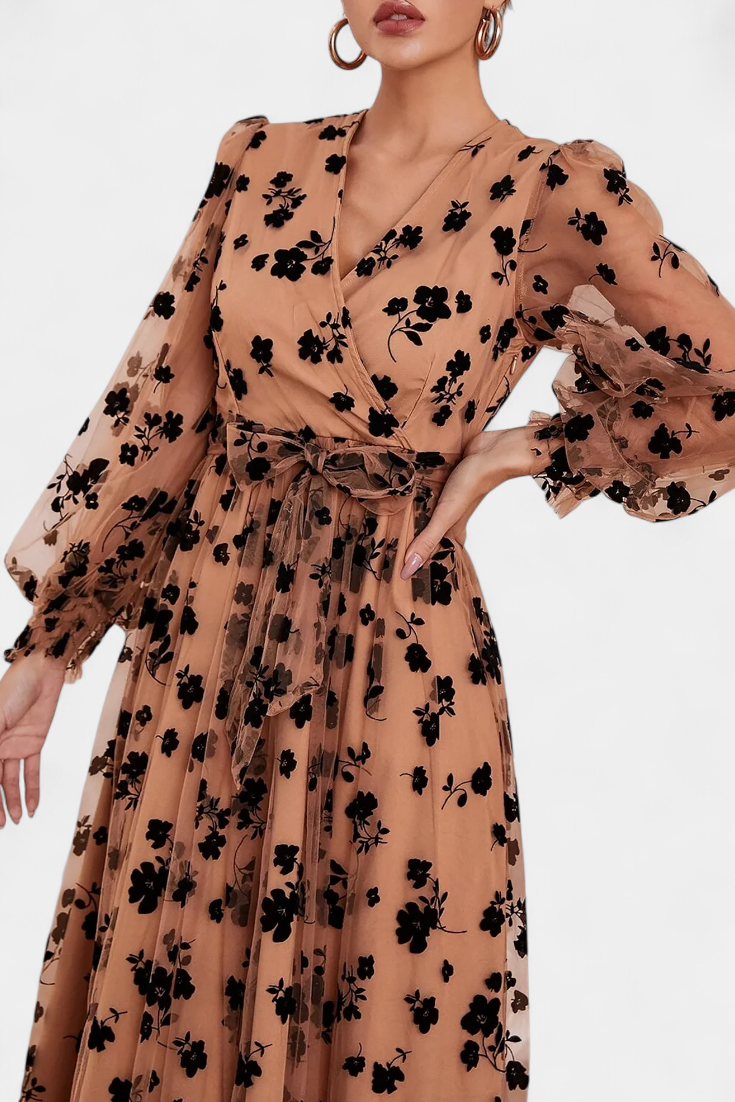 Robe Maxi en Dentelle Florale Iolanda avec Manches Bouffantes