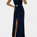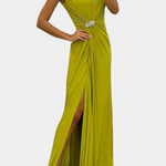 Une fusion impeccable de fluidité, d'élégance et de présence scénique. La robe Shiloh se distingue par son tissu léger, ses plis méticuleux et une fente latérale qui accompagne gracieusement chaque mouvement. Le décolleté croisé encadre délicatement la poitrine, tandis que la silhouette fluide allonge subtilement et de manière sophistiquée la silhouette.