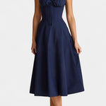 Donnez vie à l'élégance intemporelle avec Flora, une robe midi au style corset conçue pour célébrer votre silhouette naturelle. Avec son corset sculpté, son doux décolleté en cœur et sa jupe fluide A-line, Flora se déplace avec vous, alliant charme féminin et sophistication élégante pour chaque moment mémorable.