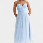 Romantique, élégante et sans effort féminin, la robe Eileen allie une élégance structurée à un charme doux et fluide. Avec son haut de corset ajusté et sa jupe en tulle éthéré, elle crée une silhouette à la fois intemporelle et charmante—parfaite pour des mariages, des galas ou toute nuit spéciale.