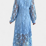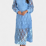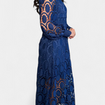 Épurée et raffinée, la robe Jovie capture la féminité intemporelle avec de la dentelle intriquée et une silhouette fluide. Avec un col haut, des manches longues transparentes et des broderies détaillées, c'est le choix parfait pour des fêtes dans des jardins, des mariages et des occasions printanières.