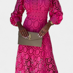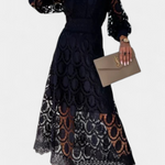 Robe Midi Lucinda en Dentelle avec Manches Bouffantes et Col Montant