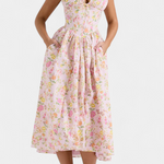 Une robe qui célèbre la féminité avec une touche de charme nostalgique. Margie allie un décolleté en V prononcé à une silhouette cintrée et une jupe midi fluide, créant une présence intemporelle avec une sensation printanière. Idéale pour des promenades ensoleillées, des célébrations en plein air ou des moments nécessitant un style naturel et radieux.