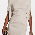Un design classique avec des détails qui élèvent l'élégance. Reece se distingue par son col rond intemporel et ses manches de longueur mi-longue qui équilibrent sobriété et style. Les perles synthétiques blanches ajoutent une touche raffinée et lumineuse, transformant une silhouette simple en une pièce sophistiquée et polyvalente.