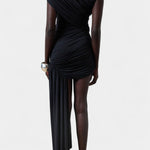 Une pièce conçue pour éblouir avec une touche moderne et chic. Velia se distingue par son décolleté off-shoulder et une silhouette ajustée qui met en valeur les courbes, tandis que les plis drapés sur l'épaule et la taille ajoutent sophistication et mouvement. Sa bande asymétrique offre un détail distinctif, en faisant une robe mini qui ne passe pas inaperçue.