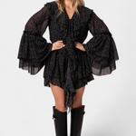 Un charme ludique avec une silhouette qui allie romantisme et fraîcheur. La robe Alida se distingue par son imprimé à pois, son col volant et ses manches évasées, créant un design léger et flatteur qui accompagne gracieusement chaque mouvement.