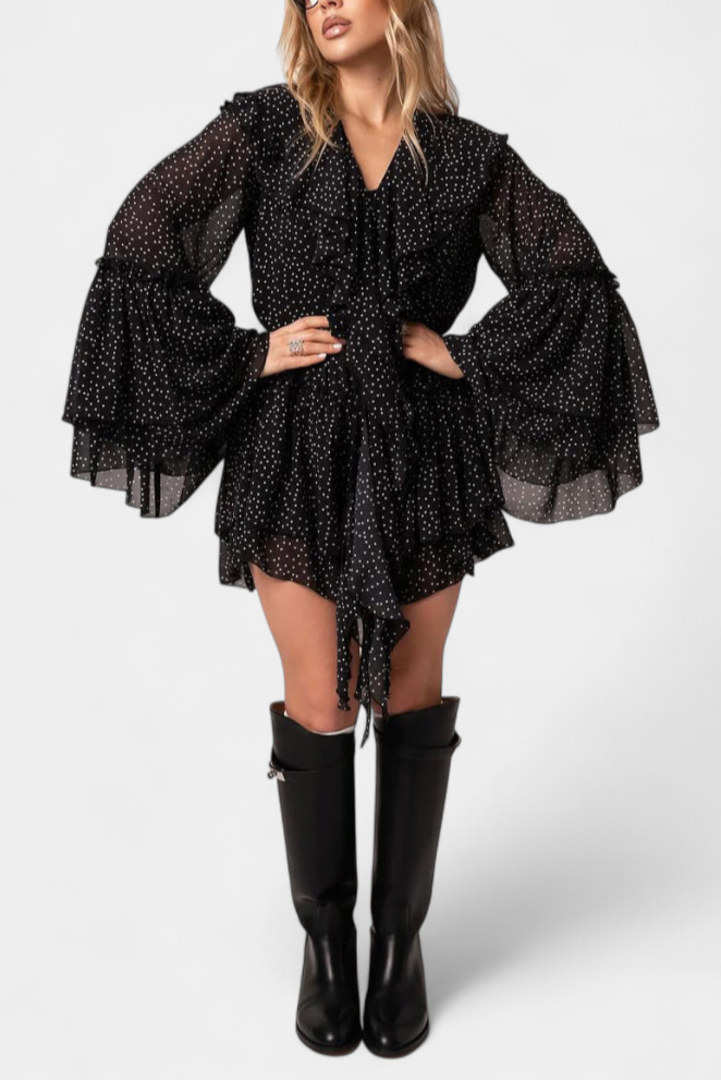 Robe Mini en Chiffon Alida à Pois et Col Volant