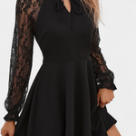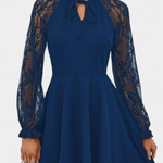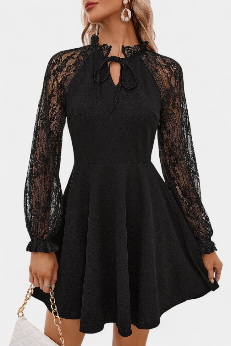 Robe Mini en Dentelle Florale Jasella avec Manches Longues