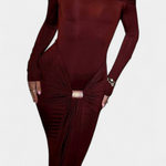 Un design qui irradie modernité et élégance raffinée. La robe Vesna allie la sensualité d'un décolleté asymétrique à la sophistication de sa silhouette croisée, créant un look confiant et élancé. La manche longue ajoute équilibre et contraste, tandis que la coupe ajustée accentue la silhouette avec caractère. Idéale pour les occasions nocturnes, les cocktails ou les célébrations où vous souhaitez laisser une impression durable avec confiance et style.