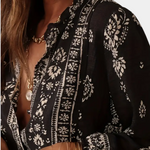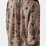 Respirez sans effort des vibrations bohèmes avec la Blouse Sauge Sauvage – confectionnée en polyester recyclé avec des impressions intriquées, c'est la pièce parfaite pour des aventures détendues et des moments d'âme.