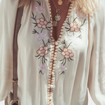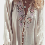 Avec un style chic et fluide, cette blouse d'inspiration ethnique présente de délicates broderies florales et une coupe ample et fraîche. Fabriquée en 100% rayonne, elle est ultra légère et parfaite pour des journées à la plage ou des sorties informelles d'été.