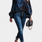 Une basique chic avec une touche moderne. La blouse Tulay se distingue par son imprimé dans des tons de noir, marron, violet, bleu marine et charbon, ajoutant profondeur et style à n'importe quelle tenue. Son design à col montant et le nœud à l'arrière lui confèrent une allure raffinée, tandis que sa coupe fluide la rend polyvalente et facile à porter.