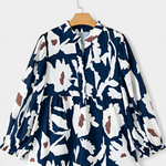 Blouse Filomena avec Demi-Patte de Boutonnage et Manches Bouffantes en Imprimé Floral Abstrait