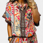 - Blouse boho avec franges et imprimé artistique qui transmet un charme naturel