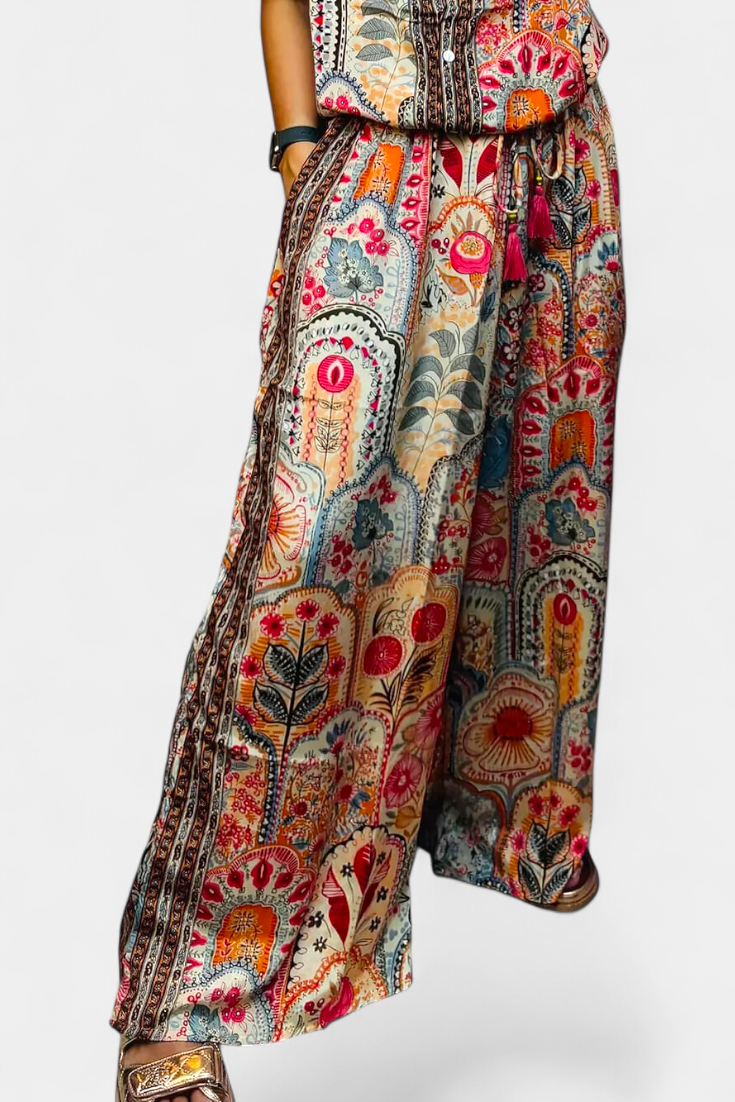 Ensemble Hallie Boho avec Pantalons Amples et Blouse à Franges