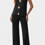 Une proposition raffinée qui allie confort et style intemporel. Jacey se distingue par un gilet en tricot de coupe classique et des détails subtils qui rehaussent n'importe quel look. Les pantalons à jambes larges avec taille élastique offrent fluidité et un ajustement flatteur, tandis que ses tons neutres assurent polyvalence pour diverses occasions.