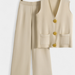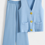 Ensemble Jacey en Tricot avec Gilet et Pantalons à Jambes Larges